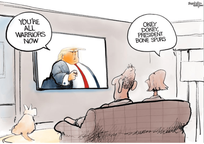 Trump let others make the sacrifice then and, as Bramhall suggests, he remains above it all today.