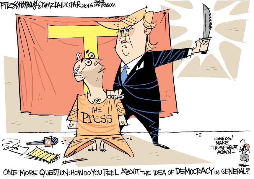 Skip to commentsAs noted earlier Lee Enterprises had announced there would be a series of pay cuts, lay-offs, and furloughs across its chain. Around the time Adam Zyglis took his two week furlough David Fitzsimmons of The Arizona Daily Star took a single week. Now Fitz is preparing us for a second week without his illustrated view of the world. Will we survive?