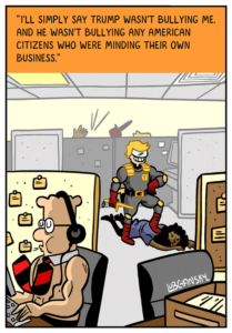 Matt Lubchansky illustrates passages from Win Bigly and Trained Hypnotist, both by Scott Adams.