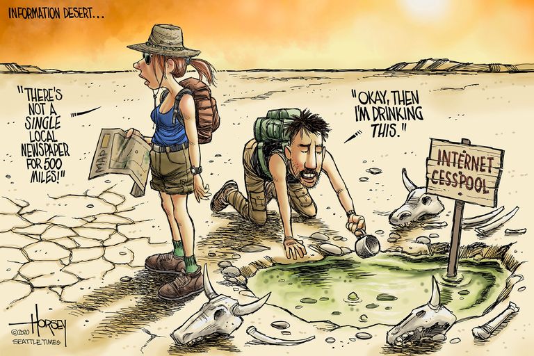 The Daily Times insists that it is an essential source of local news, and earlier this week even ran an editorial cartoon depicting two parched travelers lost in an “information desert,” forced to drink from a foul internet cesspool.
