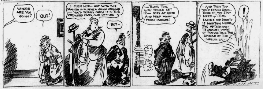 We were waiting for the next installment of Jared Gardner‘s examination of the Spanish Flu in the comic strips of 1918, but since Michael referenced it in the above report, well…