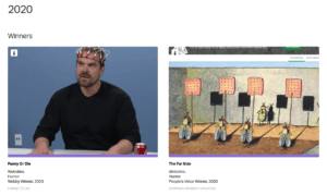 Skip to commentsThe Far Side website has won a 2020 Webby Award for being the best in Humor.