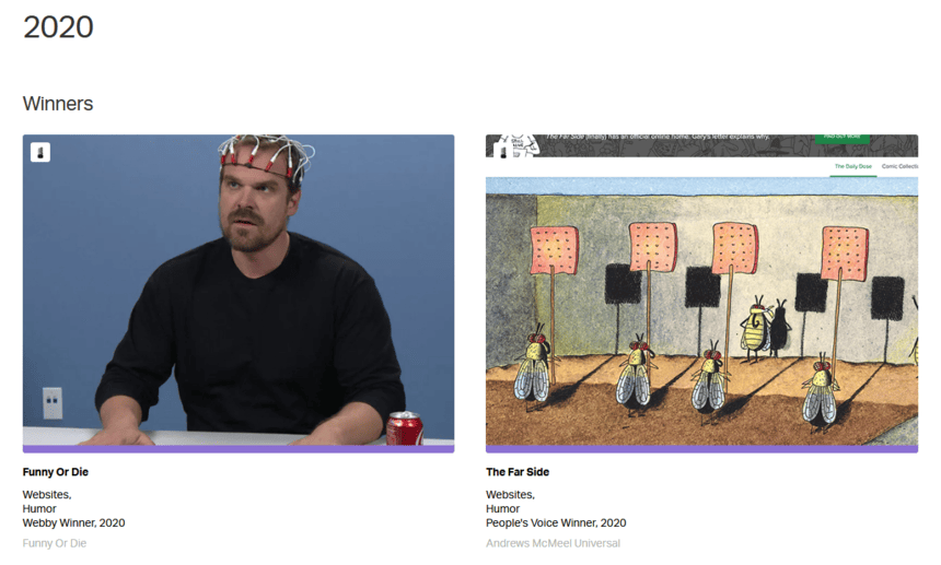 The 2020 Webby winners and nominees in the Humor category. All the Webbys.