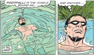 The Phantom has foolishly entered The Forbidden Forest where he is trippin’ (and naked).