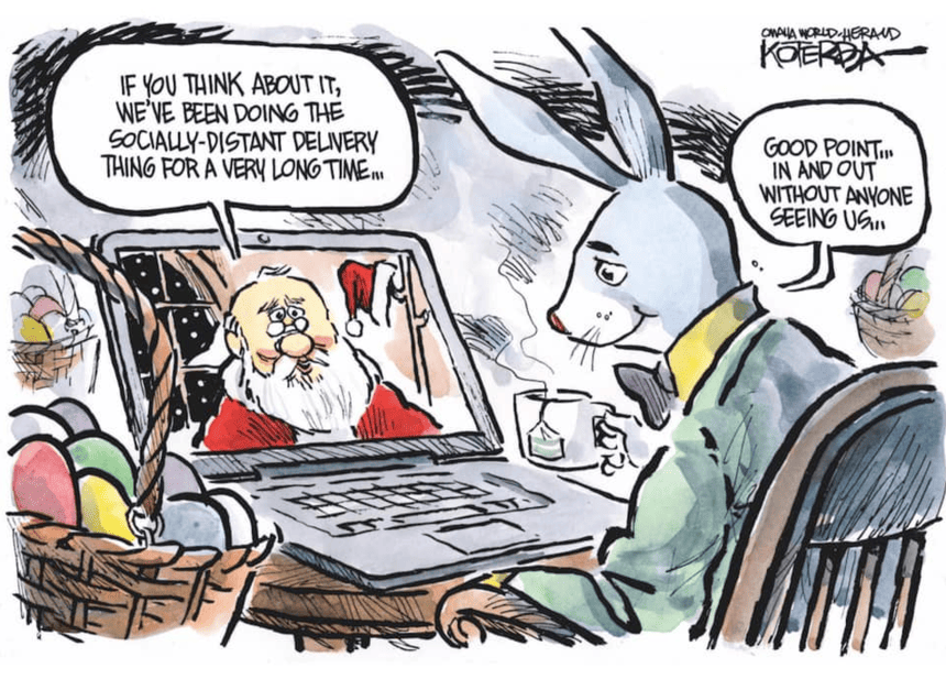 above: Jeff’s Easter cartoon. The Omaha World-Herald says it is Jeff’s first new age cartoon, while Jeff, on his Facebook page, says “This is one of the last cartoons I’ve drawn using traditional methods. Pencil, paper, pen, brush, ink, watercolor.” You decide.