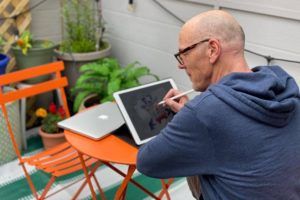 Jeff Koterba trades his pencil and ink for pad and apple.