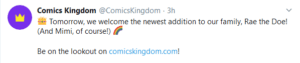 Comics Kingdom announced on Twitter that Rae the Doe will start appearing on their website on June 8: