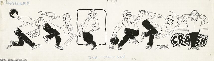 He worked briefly at The Sacramento Bee and The Minneapolis Star before the Newspaper Enterprise Association hired him in 1952 to develop a daily sports comic strip. But that idea never panned out. Working out of the syndicate’s New York office, he began turning out general sports cartoons, columns and features instead.
