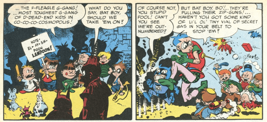 Above: a couple panels from 1953’s “Bat Boy and Rubin.”