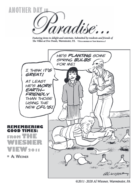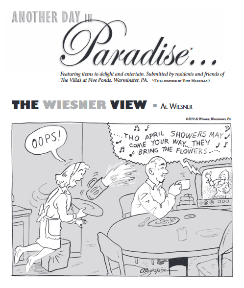 For at least ten years Al had contributed a panel cartoon to The Villa’s Voice, a monthly neighborhood newspaper. His comic continued until March of 2020 when the community newsletter took on a different manner of publication due to the Covid-19 pandemic.