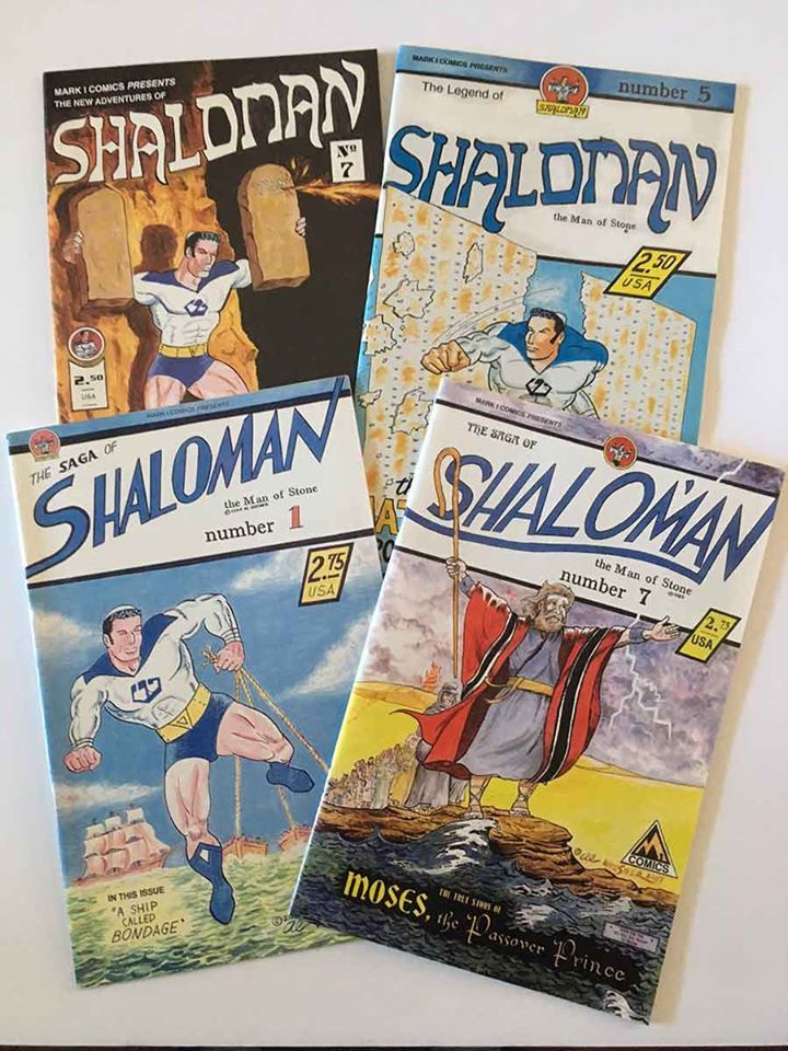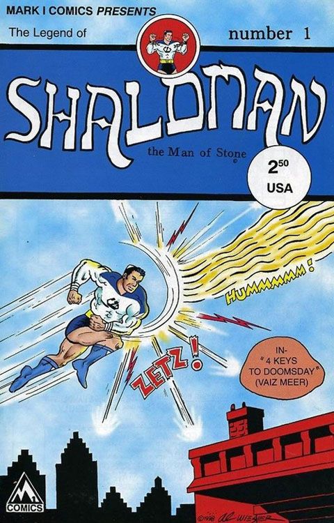 After a few exchanges with a DIY comics place in Norristown, Wiesner started on the first of 42 issues that would feature his Jewish superhero: the Man of Stone, or Shaloman. He formed his own comic book publishing company, Mark 1 Comics, named for his son, and Shaloman debuted in 1988.