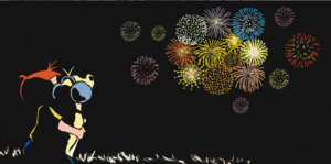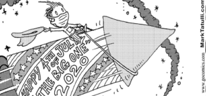 These days daily comics come with color so The Fourth landing on a Saturday doesn’t disallow for a red, white, and blue fireworks display. Dustin and Dennis did it.