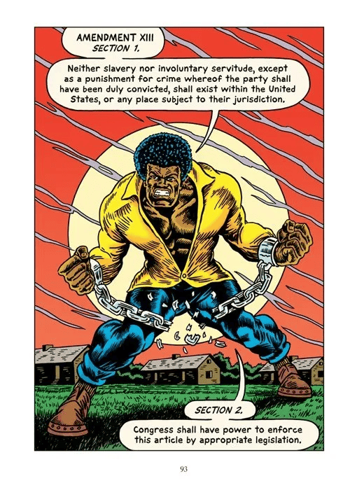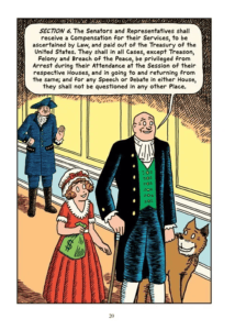 Cartoonist R. Sikoryak’s talent for mimicking other cartoonists, from Krazy Kat‘s George Herriman to Nancy‘s Ernie Bushmiiler, is uncanny. He has a new book out, called Constitution Illustrated, published by Drawn & Quarterly and I have been marveling at the illustrations. The publisher kindly gave me permission to run some samples so you can see the versatility of Sikoryak’s work.