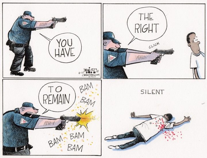 On Aug. 31 The Daily Gazette published one of Britt’s cartoons. It showed what looked like a police officer shooting a Black person in the back, saying “You have the right to remain silent.”
