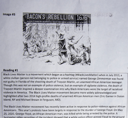 Perhaps Nicole’s mother didn’t look past the anti-cop cartoon. It’s hard to imagine how a complaint about “brainwashing” could overlook that implied demand that students swear fealty to BLM on penalty of a lowered grade, social ostracism, or worse. Presenting the desired ideology as the ‘correct’ answer to a supposedly factual question is textbook thought reform.