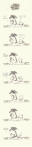 I want the strips to feel active. The marks are always quick, and the characters are always moving. And with the writing style, because these are online comics, I’m not restricted by the traditional newspaper panel structure. With the three- to four-panel gag limitations removed, I can allow the setup and payoff to unfold in whatever number of panels the joke requires. This is refreshing because while I still aim to tell one main gag, it doesn’t have to follow the same beat as traditional strips.