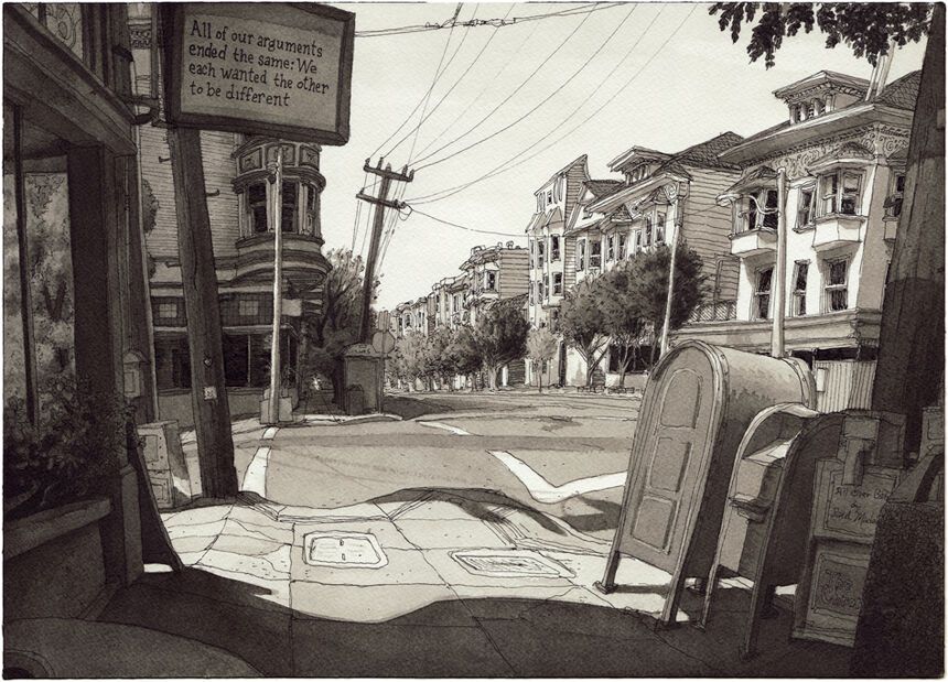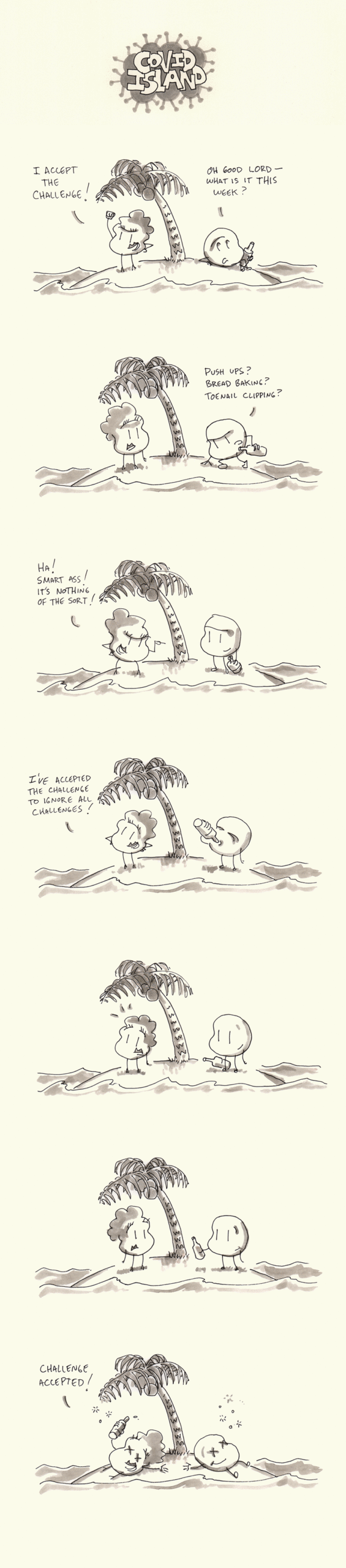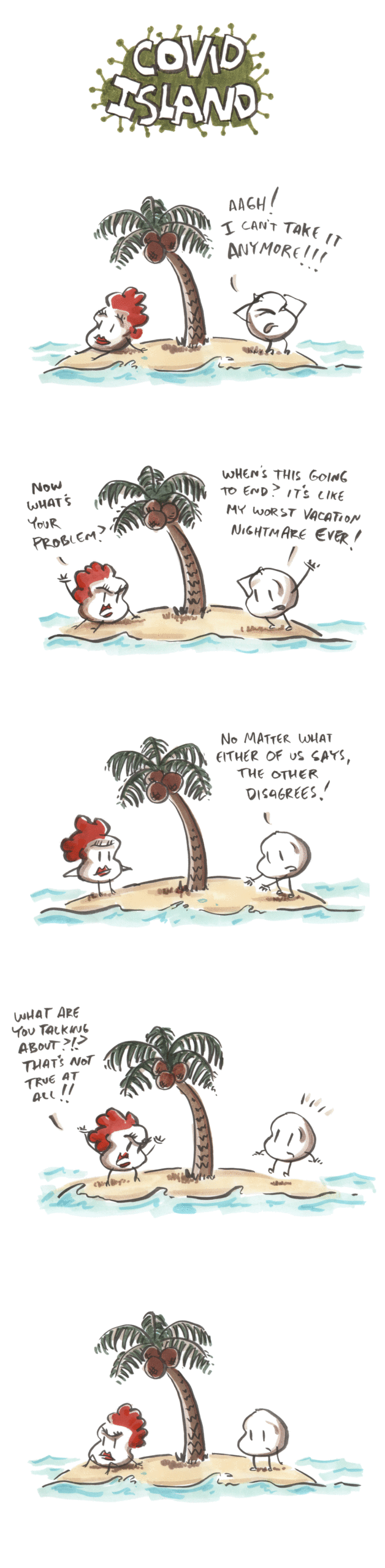 I want the strips to feel active. The marks are always quick, and the characters are always moving. And with the writing style, because these are online comics, I’m not restricted by the traditional newspaper panel structure. With the three- to four-panel gag limitations removed, I can allow the setup and payoff to unfold in whatever number of panels the joke requires. This is refreshing because while I still aim to tell one main gag, it doesn’t have to follow the same beat as traditional strips.
