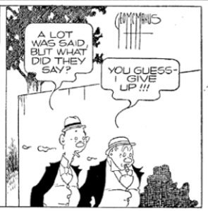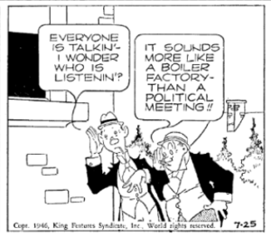 In the vintage section of Comics Kingdom Jiggs is running for mayor. Two days after our September 29 Presidential Debate the 1946 vintage rerun seemed as current as any editorial cartoons that day.