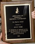 The AAEC Ink Bottle Award — The Ink Bottle Award is presented annually by the President of the AAEC “in recognition of dedicated service to the Association and distinguished efforts to promote the art of editorial cartooning.” This year’s recipients are Adam Zyglis, Ed Hall and JP Trostle, the trio of cartoonists who labored for several years to revamp the AAEC’s website, and update look of the 64-year-old professional organization for the 21st century.