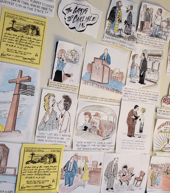Since 2002, Gray has drawn the faith-based cartoon “Shades of Gray” for the religious page of the Sullivan Daily Times in Indiana.