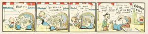Gottfredson: About a half hour later, Walt called me into his office and asked me whether I would like to take over doing the strip. By now I had become very interested in animation and was reluctant to change. I told Walt that he was right and that I would prefer to stay with animation. Well, Walt was quite a salesman. He told me to just take the strip for two weeks to give him some time to find another artist.