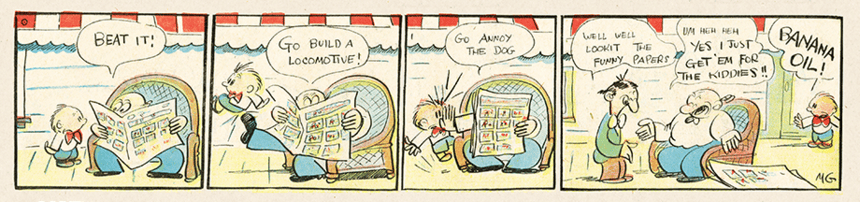 However, out of all the amazing collectors, hoarders, scholars, archivists, and authorities of this indigenous American art and design narrative form, I am most in awe of Peter Maresca, the founder in 2005 and publisher of Sunday Press, purveyor of newspaper comic page reprints, including strips by Winsor McKay, Lionel Feininger, George Herriman, Gustav Verbeek, E.C. Segar, and more. This story is as much a tribute to his incredible preservation vision as it is a salute to his latest collection: Gross Exaggerations: The Meshuga Comic Strips of Milt Gross.
