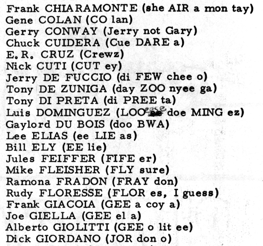 Decades ago (1976) The Comic Reader had a Pronunciation Guide to Creator Names