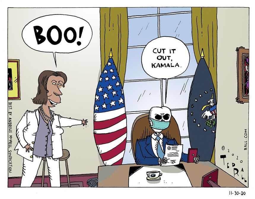 Which is certainly a partisan take (In a political cartoon? Horrors!!!), but is also in line with the genial, smiling and unperturbed way Biden carried out his entire campaign, while his opponents derided him as being afraid to come out of the basement.