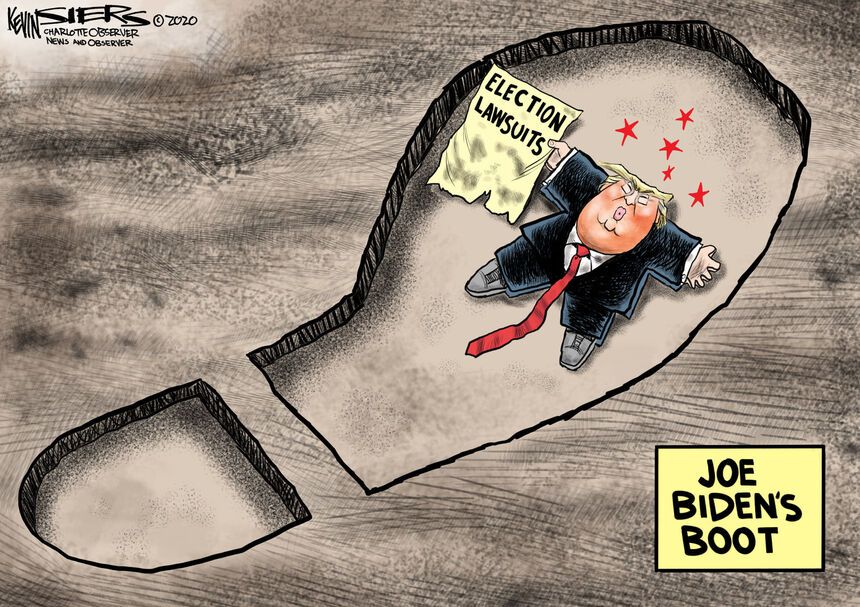 Finally, Kevin Siers (N&O) steps away from the walking boot to a different boot entirely, making it an appropriate commentary on the failing/flailing attempts by Trump to overturn reality.