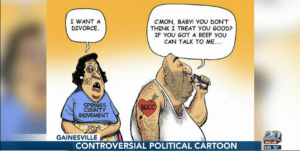 According to Fuller, a City Commissioner saw the cartoon and complained to the Gainesville Sun. “He apparently complained to the editor that it was in poor taste because of the, there had been a double homicide here in town and domestic violence,” Fuller told TV20.