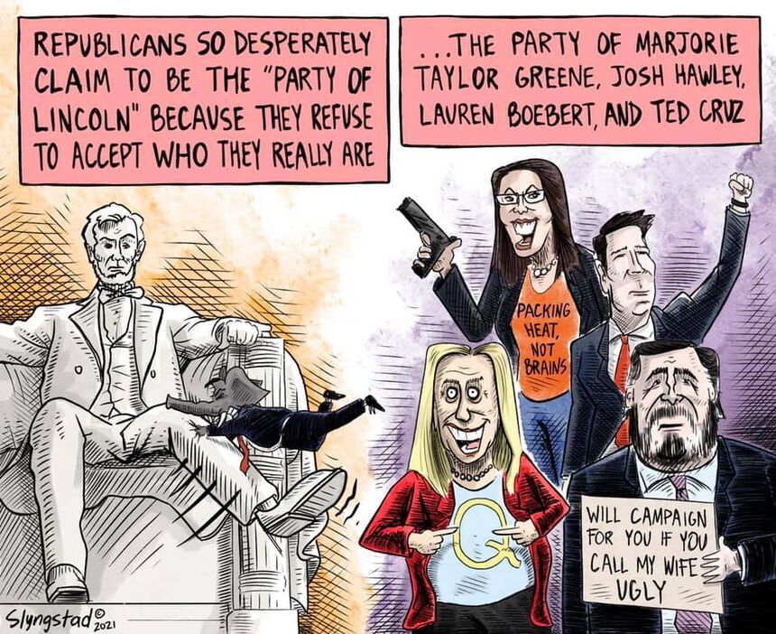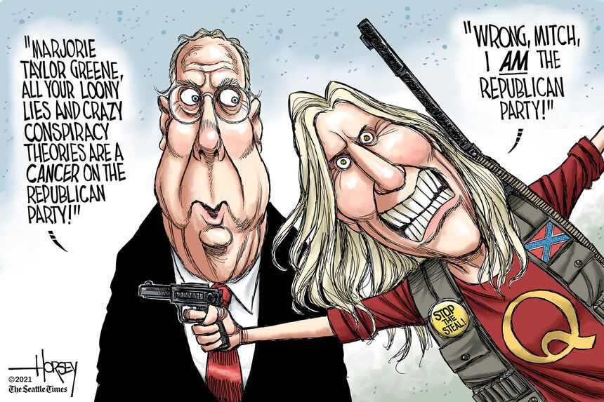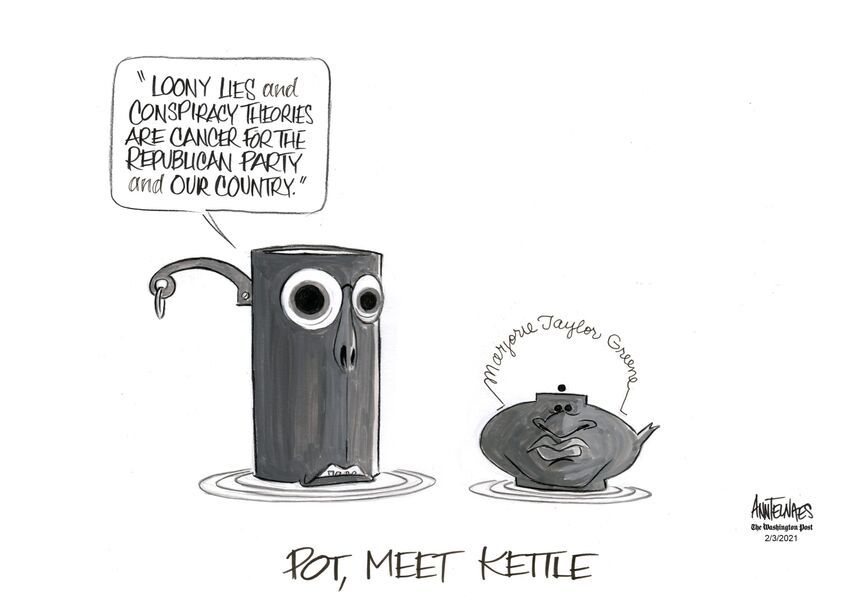 As Ann Telnaes (WashPo) puts it, Greene is only a symptom. The rot runs through a party that addresses her toxic delusions with empty words.