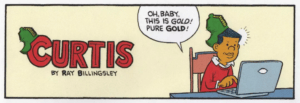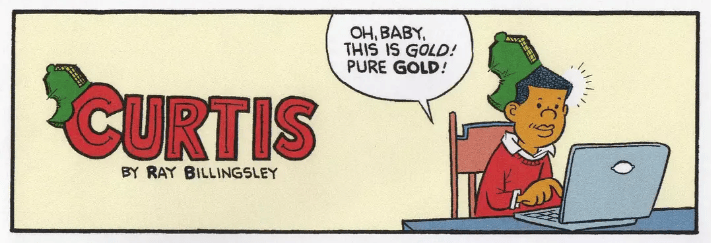 Raised in Harlem, Ray Billingsley was still a kid himself when he started drawing for the magazine Kids at the age of 12 … He debuted Curtis in 1988. Distributed by King Features, Curtis—a multilayered tale of an urban African American family of four and their wider community—has been a remarkable success, appearing in more than 250 newspapers.
