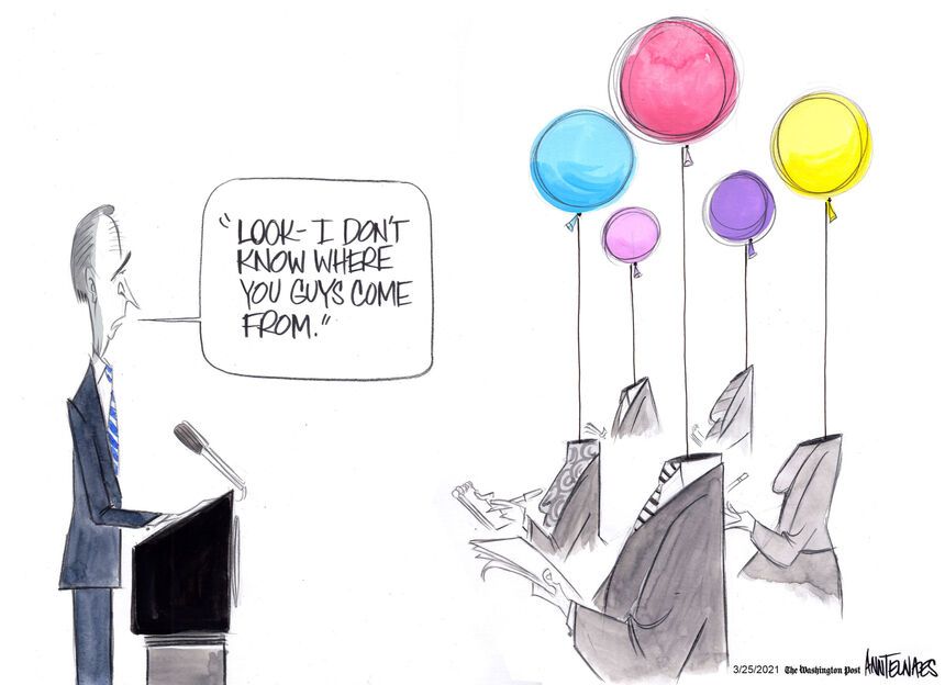 I don’t know which is worse, that Ann Telnaes (WashPost) has so well critiqued yesterday’s press conference, or that her colleagues Margaret Sullivan and Jen Ruben called it before it happened.