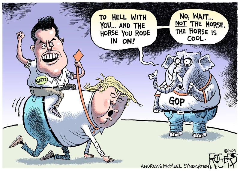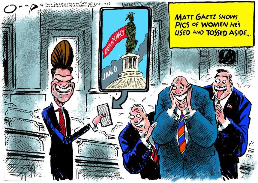If Gaetz hasn’t (to our knowledge) posted naked pics on the Internet, he has, as Jack Ohman (WPWG) notes, reportedly shared them with fellow legislators on the floor of Congress.