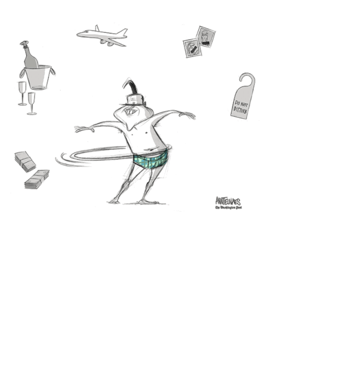 Some headline writer at the New York Times has won the Captain Obvious award for that one, though I prefer Ann Telnaes (WaPo)‘s graphic take on things, which, in turn, is partially inspired by a ghastly, hilarious, horrifying Bulwark piece by Charlie Sykes, headlined “Lordy, There Were Hula Hoops.”