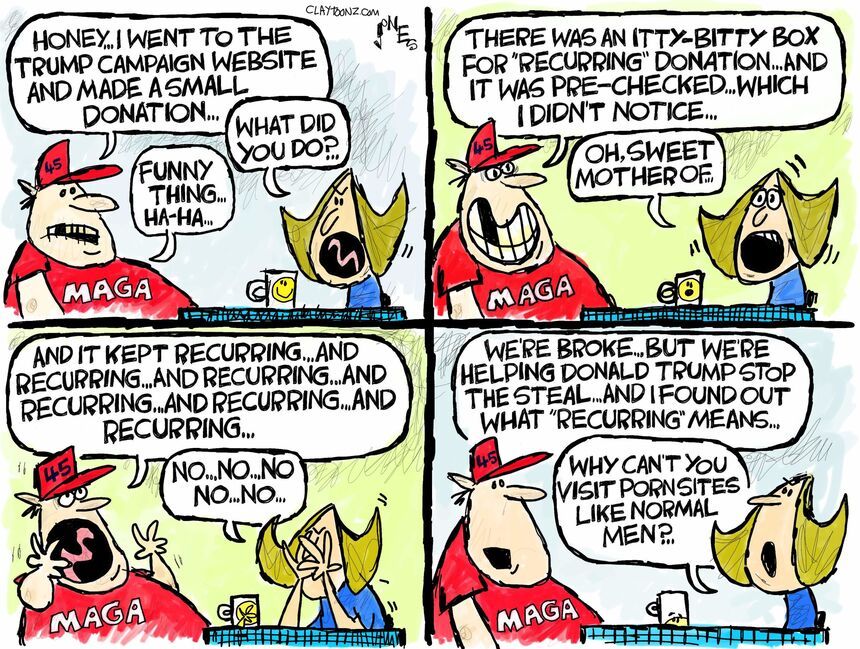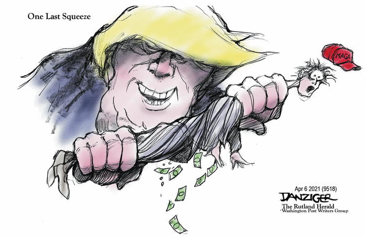 And what happened is what Danziger portrays: Trump stepped up for one more con game, one more chance to fleece the suckers.