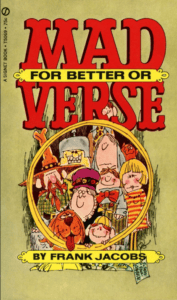 Though Frank was a versatile writer he is most famous for his parodies of songs and poetry. That talent put MAD in court when he and Larry Siegel created a 20-page parody songbook that led a few music publishers to sue for copyright infringement.