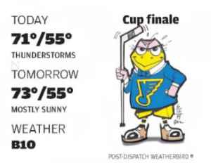 First hired by the paper in 1980, Martin has been drawing the beloved Weatherbird character for 35 years now, taking up the task when his predecessor Al Schweitzer retired in 1986. He’s the sixth artist to carry on the legacy since the cartoon first appeared in the February 11, 1901, edition of the Post-Dispatch.