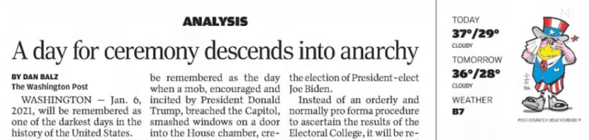 On January 7, 2021 there was no “light” front page story: