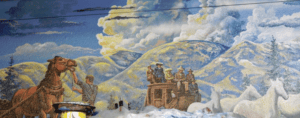 Hanley drew 10 different scenes that incorporate the local scenery and various uses of horses, from providing transportation for the Native Americans to logging, agriculture, mining, rodeo and more.
