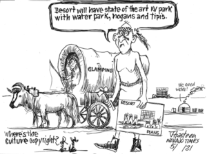 The cartoons that were created as a result gave voice to the trauma of forced removal. As Ahasteen remarked in a 2019 Navajo Times front-page article written by Rima Krisst, “There’s no word for relocation in Navajo. It was like a death sentence to them.”