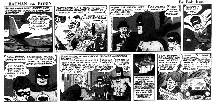 I note, however, that the Batman comic strip seems a mashup of the serious, classic comic book and the campy TV show which began that year.
