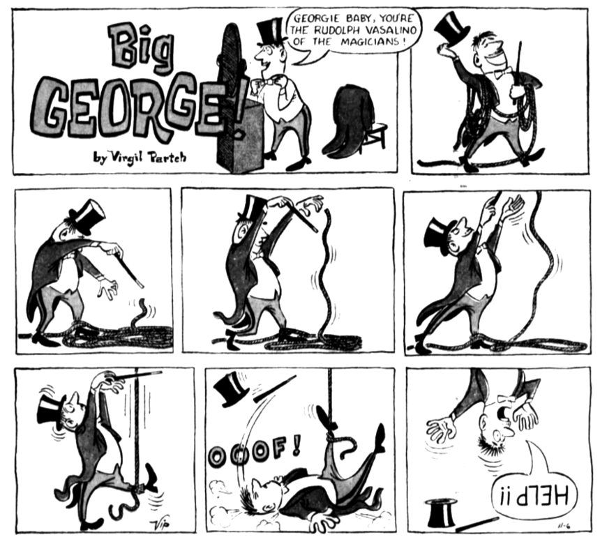 My dad cartooned for a hobby, so Vip was a big presence in our house, though Big George wasn’t in our local paper. Not sure multi-panel work was his strong suit, but the art was nice.