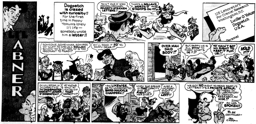 L’il Abner also offered social commentary, this being shortly before Al Capp went off the rails into Rush Limbaugh territory.