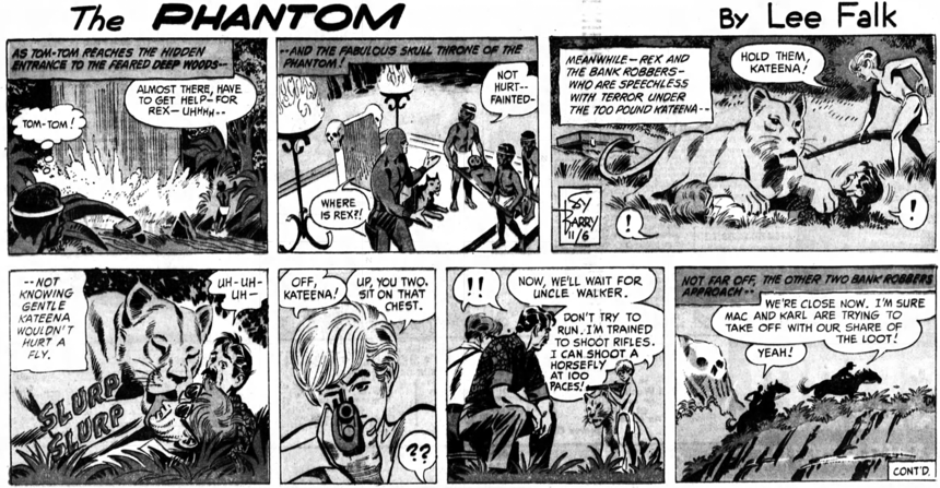“Phantom say let no man follow” became such a running gag in our family that I was surprised, in later years, to find people who really did take the strip seriously. But, then, the Andrews Sisters sold a lot of records.