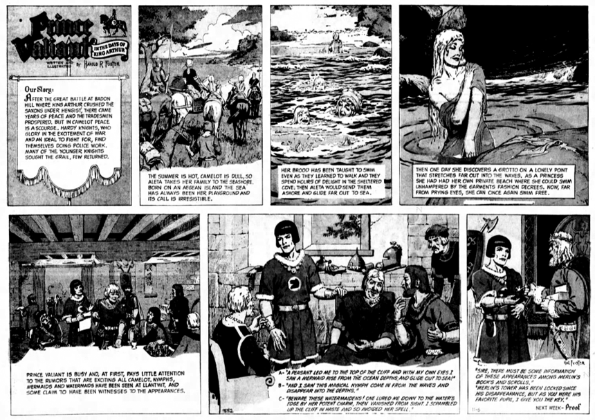 We were, on the other hand, required to take Prince Valiant seriously, not simply because Hal Foster was a brilliant artist and storyteller but because he lived down the road from my mother’s folks in Connecticut and welcomed neighborhood kids, including my uncle, into his studio to see how it all came together.
