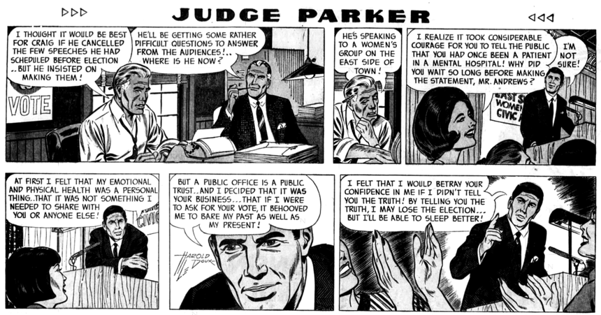Interesting topic in Judge Parker, given that it would be another half-dozen years before Thomas Eagleton was outed as having suffered from depression and forced to drop off his spot as VP candidate on George McGovern’s ticket.