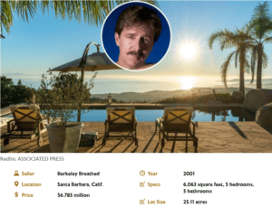 While not every writer or artist requires seclusion for focus and/or inspiration, it seems award-winning cartoonist and children’s book author Berkeley Breathed has benefitted well from the relative (if luxurious) isolation afforded him at his long-time mountaintop estate on the outskirts of Santa Barbara, California. Squirreled away at the end of narrow road that makes a dizzying wind up through the foothills, Breathed’s secluded spread is newly for sale through The Ebbin Group at Compass at $6.875 million.