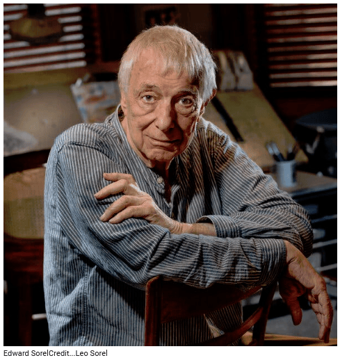 Sorel, 92, has indeed had a profusely illustrated life. Over the past six decades, you’ve probably seen his many New Yorker and Harper’s Magazine covers, his political satire in The Nation, his cartoons in New York magazine, his caricatures in Vanity Fair. Perhaps you’re familiar with Ramparts magazine’s bestiaries, which lampooned the political follies of the 1960s, or “Sorel’s Unfamiliar Quotations” in The Atlantic. Maybe one of his many books? And all that’s to say nothing of the thousands of sketches and commissions and album covers and illustrations that animate the margins of a working artist’s career. Of course there’s no question your chances of recognizing his distinctively wavy drawing style are a lot better if you’re what he’d call an “Old Lefty.”