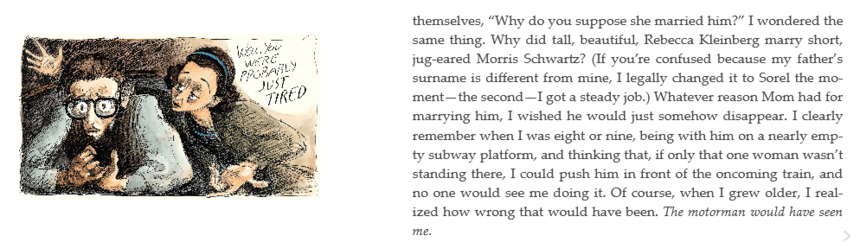 Alongside more than 172 of his drawings, cartoons, and caricatures—and in prose as spirited and wickedly pointed as his artwork—Edward Sorel gives us an unforgettable self-portrait: his poor Depression-era childhood in the Bronx (surrounded by loving Romanian immigrant grandparents and a clan of mostly left-leaning aunts and uncles); his first stabs at drawing when pneumonia kept him out of school at age eight; his time as a student at New York’s famed High School of Music and Art; the scrappy early days of Push Pin Studios, founded with fellow Cooper Union alums Milton Glaser and Seymour Chwast, which became the hottest design group of the 1960s; his two marriages and four children; and his many friends in New York’s art and literary circles.